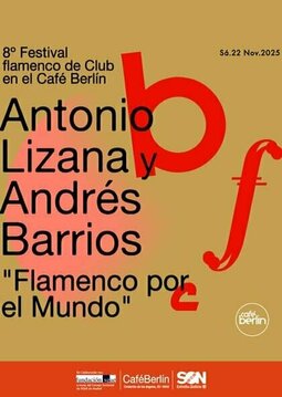 The 8th Flamenco Club Festival at Café Berlín presents Flamenco por el mundo, a collaboration between Antonio Lizana and Andrés Barrios, two artists who are redefining the scene by blending flamenco with jazz and global sounds. A vibrant proposal that unites tradition and innovation on the same stage.